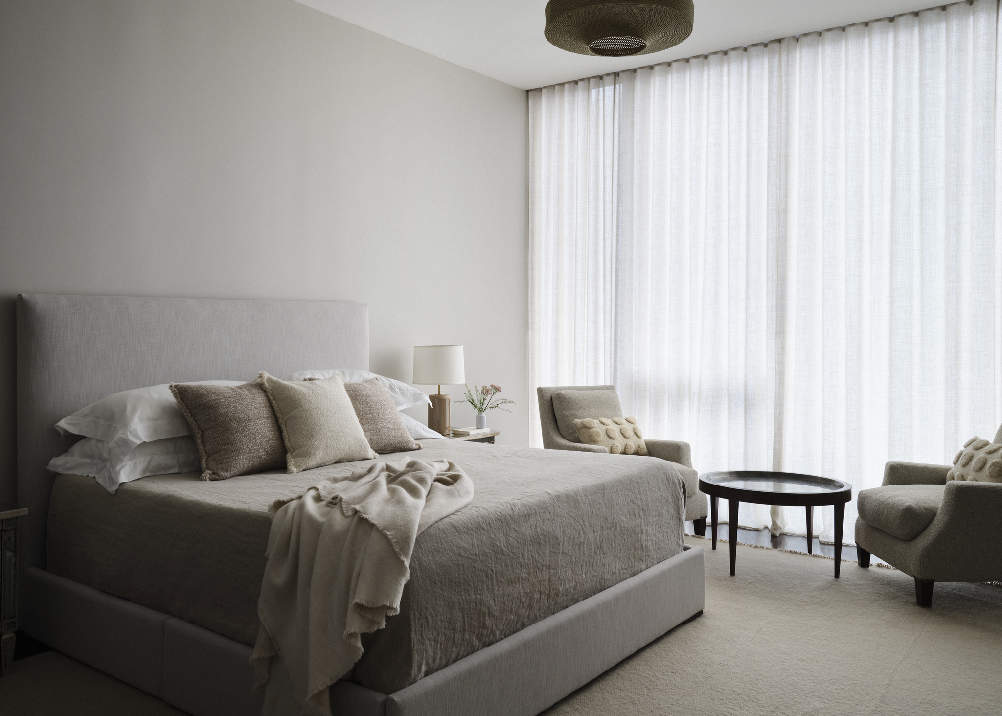 The apartment is sophisticated and urbane, providing a comfortable respite from the city streets below.
